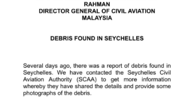 Malaysian authorities still investigating latest piece of possible MH370 debris